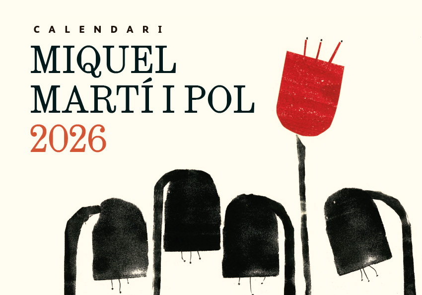 El primer poema que em va arribar («Mireu-me bé: soc l’altre») va arrossegar-me, d’alguna manera, cap a un tipus d’imatges que, en anar movent-les sobre el paper, em van dur a la primera il·lustració final. Allò va marcar l’estil de la resta de la meva proposta. Cada poema, però, va acabar plantejant-me qüestions diferents. «De tu i de mi» (poema que il·lustra el mes de maig), per exemple, em va suggerir una relació molt potent amb la música. «Creixença» (del mes d’abril), pel contrari, em va costar molt d’interpretar. A dia d’avui encara no sé si el resultat a què vaig arribar va copsar del tot el sentit del text. Setembre, amb el poema «Final d’estiu», em va resultar enormement motivador. L’emoció en les paraules de Martí i Pol juntament amb la imatge poètica que em van transmetre es van convertir en ocells i en lletres arrossegades pel vent, al costat d’una forma simple, d’un roig vibrant.
